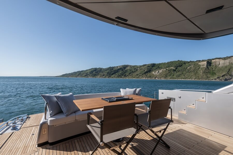 “Owners who opt for the Pershing GTX80 love conviviality and playing host to numerous guests,” said Tirelli, noting how this layout that perfectly connects the interior and exterior spaces will appeal to this sort of clientele.