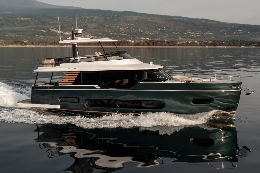 The new model features an efficient Dual Mode semi-planing hull and is the first Azimut to be used with HVOlution biofuel, which combined to produce a well-to-wake reduction in CO2 emissions of more than 80 per cent compared to a yacht of comparable size powered by diesel.