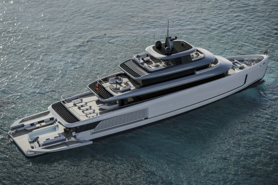 Project Life is equipped with modern technologies to reduce consumption including a highly efficient, optimised hull; diesel-electric propulsion with fossil and non-fossil fuel (HVO) technology and POD transmission; and integrated hybrid solar panels that collect both solar and thermal energy to power the tenders, toys and appliances.