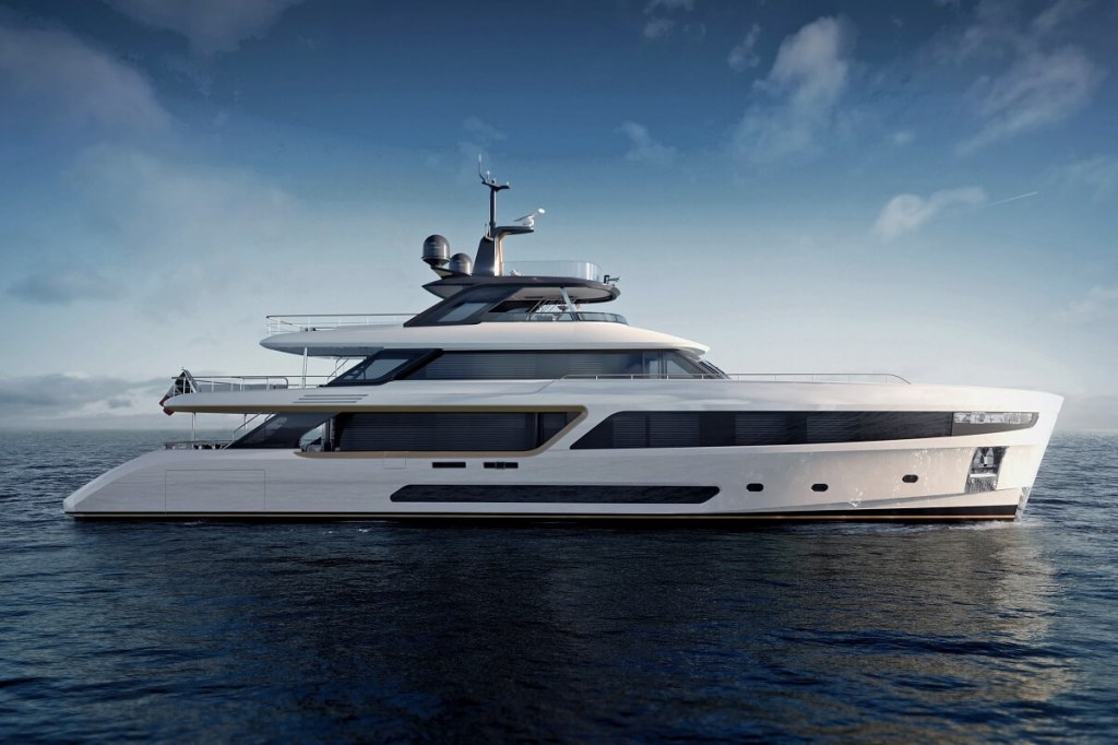 The 121ft, four-deck Motopanfilo sits at the heart of the builder’s Class family of yachts, in-between the Mediterraneo 116 and Fast 125.