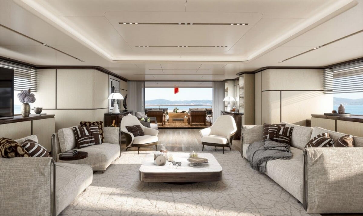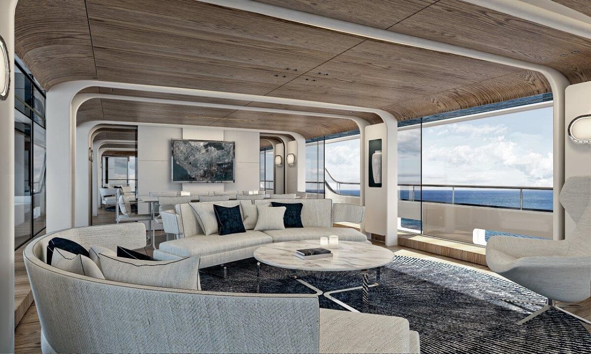 Lazzarini Pickering Architetti’s interior design emphasises the yacht’s ‘ribs’