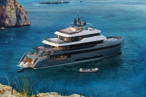 The yacht has four decks and is designed for long cruises with a reduced environmental impact due to the E-Mode propulsion architecture developed for the shipyard by Siemens.