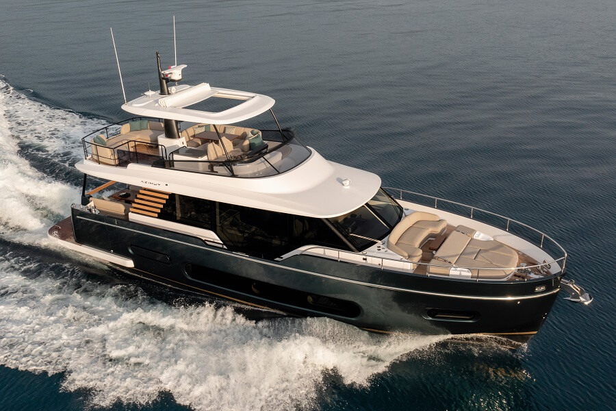 Absolute is staging the European debut of its new 52 Fly along with the 56 and 60 Fly models, five Navetta models – 48, 52, 58, 64 and 75 – as well as the 48 Coupe. Arcadia is unveiling its new A96 along with the A85, Sherpa 60 and Sherpa 80, Extra is showing its X99 Fast, Otam is showing hull three of its 70HT, while Wider could debut its Wilder 60.