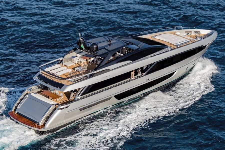 Adjacent to the master cabin is a recessed exterior space featuring a jacuzzi pool, along with ample private sunbathing and dining areas. A TV that folds out to face the jacuzzi adds to the luxury.
