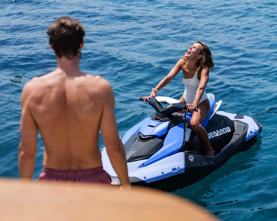 The multi-purpose top deck, nestled below the mast, is the perfect getaway. There is a large jacuzzi forward, with a special shallow area, making it safe and accessible for young children. The largest sunbeds on the boat surround the jacuzzi and double as an outside bed and star-gazing spot on warm nights.