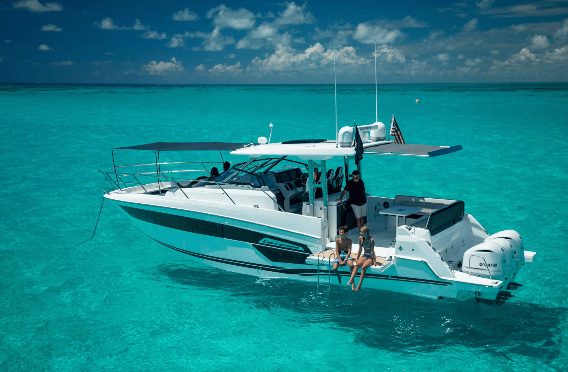 The Azimut Seadeck 7 cuts a sleek profile and performs with reduced decibels and emissions thanks to its design, hybrid tech and materials used