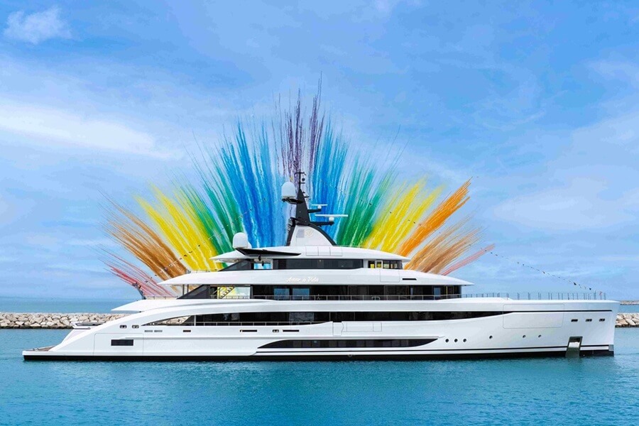 Designed by Nuvolari Lenard, the 221ft hybrid superyacht was splashed at the Ferretti Group Superyacht Yard ahead of a spring handover.