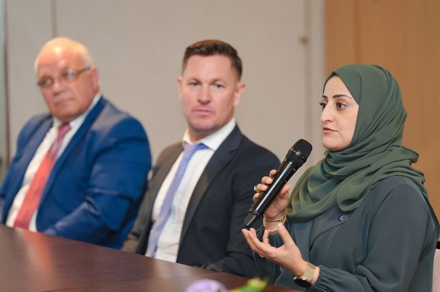 Nouman Al Hakim (Al Ameeri), left, Brett Noble (Bush & Noble) and Abeer Alshaali (Gulf Craft)