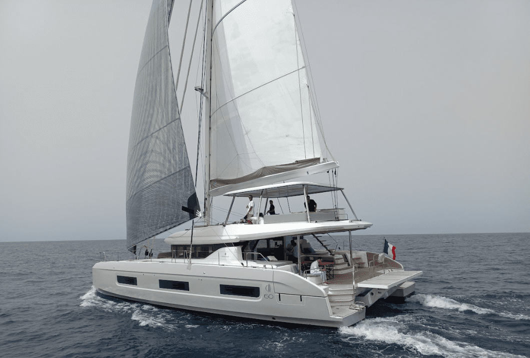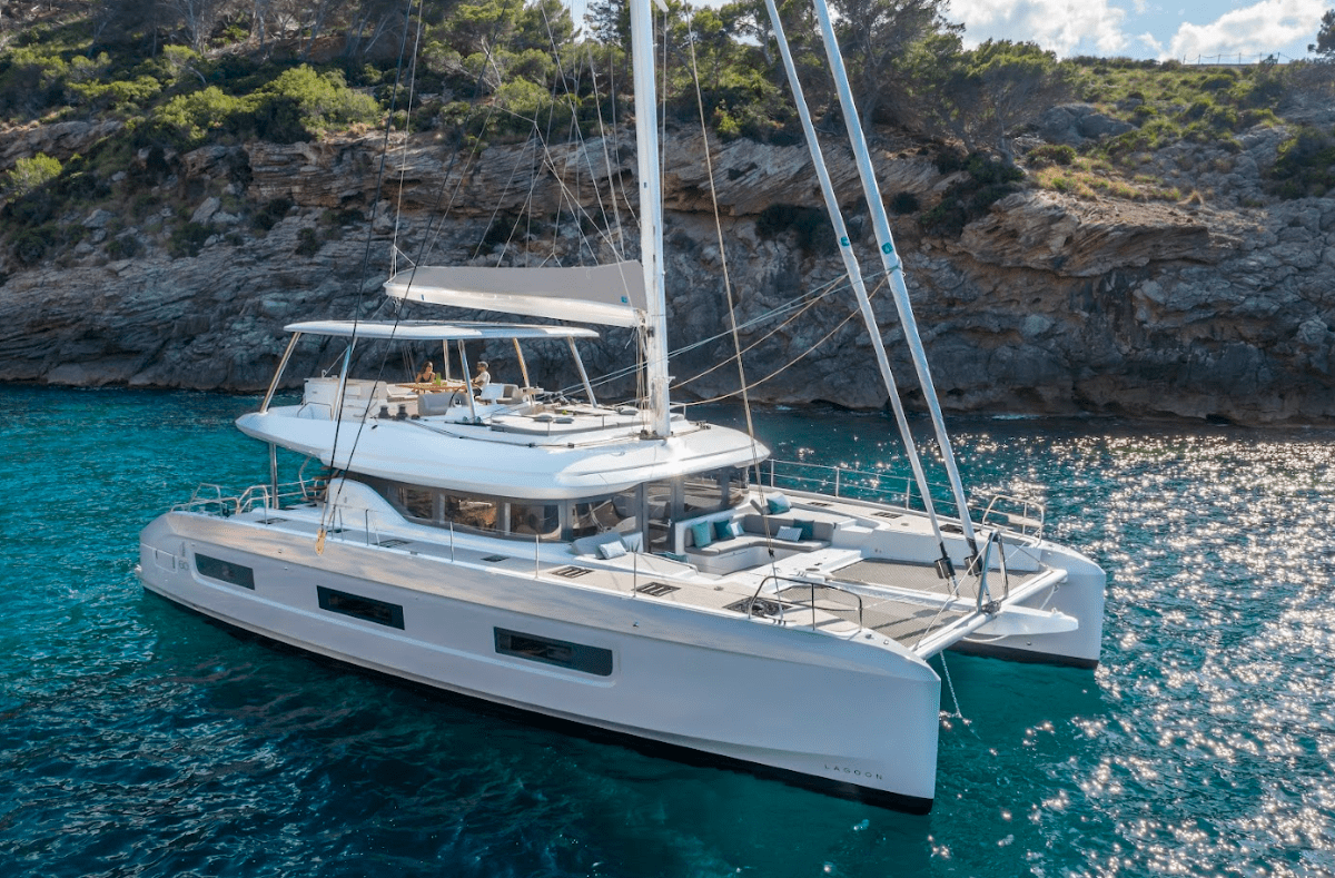 The Lagoon 60 was anchored in Menorca, with the Lagoon staff staying on board