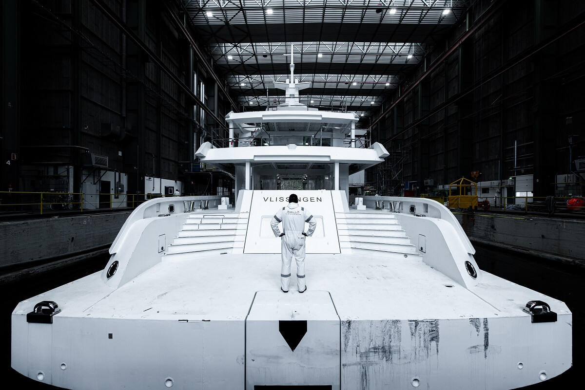 The first Amels 60 in the Netherlands for outfitting. Photos: Tom van Oossanen