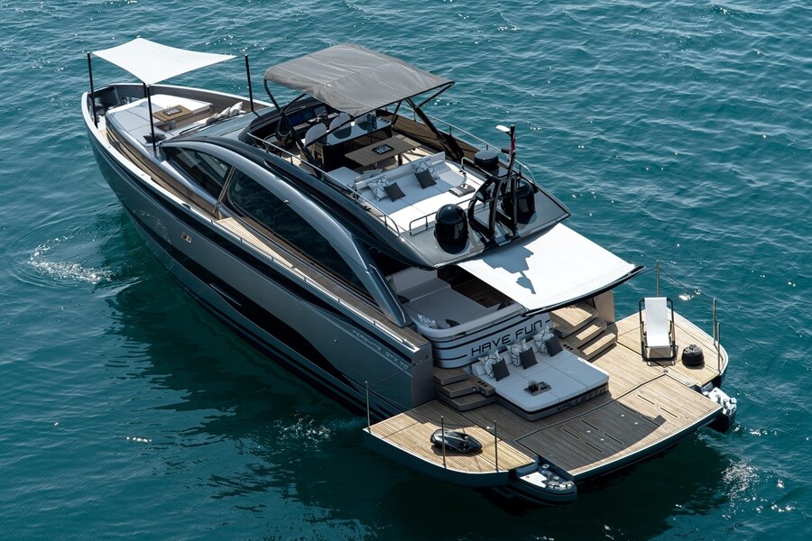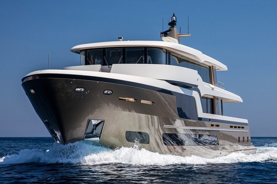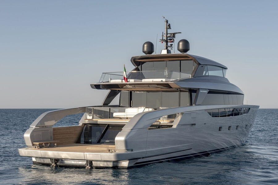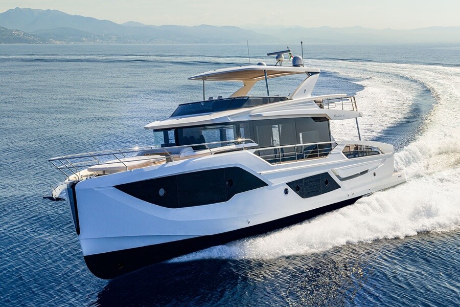 The display includes the flagship Grande Trideck (38m) plus the Grande 32M and Grande 26M from its superyacht series, as well as the Magellano 30M, Magellano 25M and Magellano 60. The Seadeck 7 and Seadeck 6 Sundeck represent the brand’s newest collection, while its other yachts on display comprise three Fly models (68, 62, 53), an S7 sportbridge, and the Verve 48 cruiser.