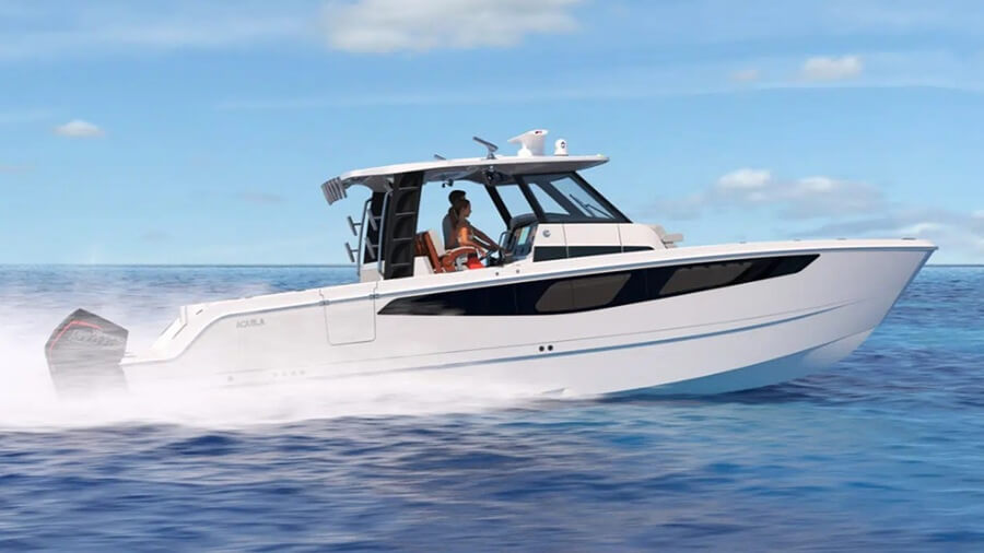 Aquila is staging the global premiere of the 36 Molokai and the US debut of its 46 Yacht, which had its world premiere at Cannes last month. The builder’s six-model display at Dock E in Bahia Mar Yachting Center also includes the 54 Yacht, 50 Yacht, 47 Molokai and 42 Coupe.