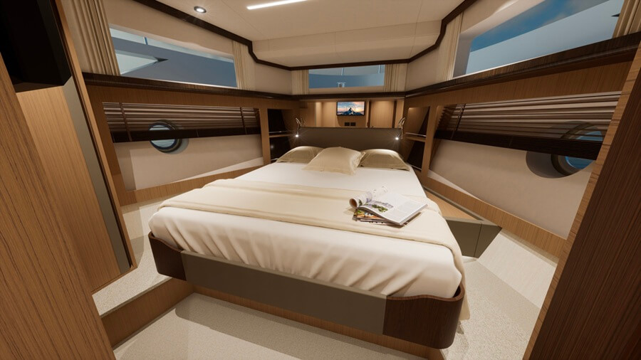 “From the interior point of view, the big revolution was the full-glass ending of the saloon that allows big openings of the galley and creates a strong connection with the cockpit, which is now offered in two versions.”