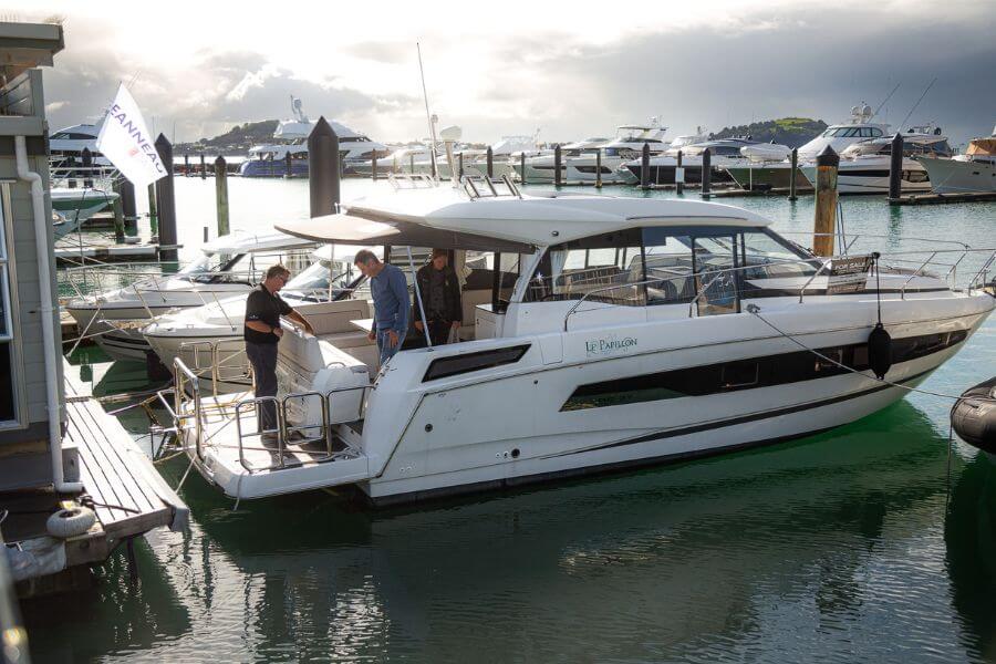 Boat fans in New Zealand’s Orakei Marine view the Jeanneau NC37