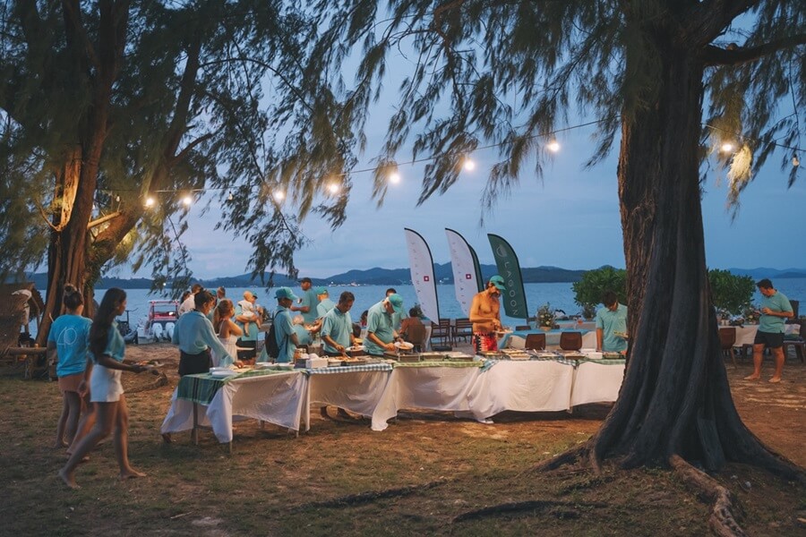 Eight Lagoon catamarans joined the rally and beach party, with the fleet sailing across the stunning waters of Phang Nga Bay before gathering at Nina Beach Camp, on the north of the beautiful island of Naka Noi.