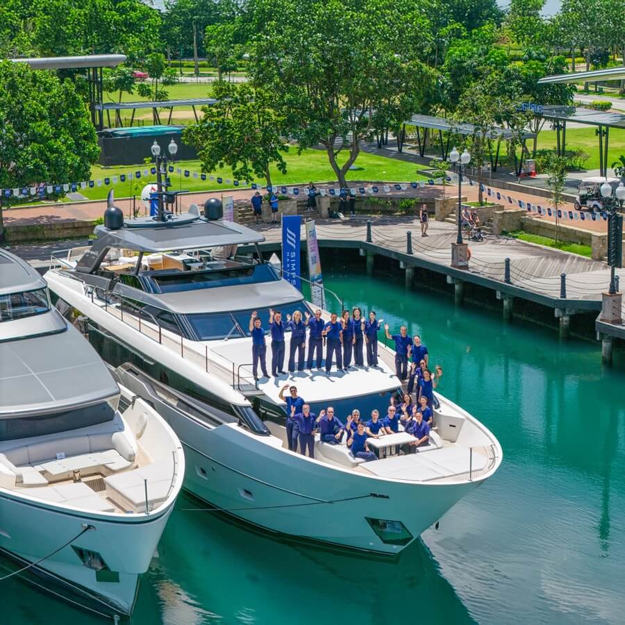 The Sanlorenzo Asia Pacific team at the 2025 Singapore Yachting Festival in ONE°15 Marina Sentosa Cove