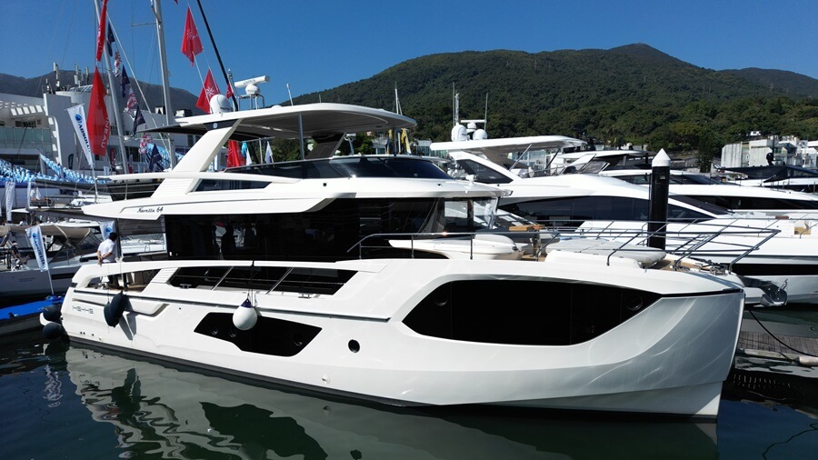 The Absolute Navetta 64 on display at the 2024 Hong Kong International Boat Show at Club Marina Cove