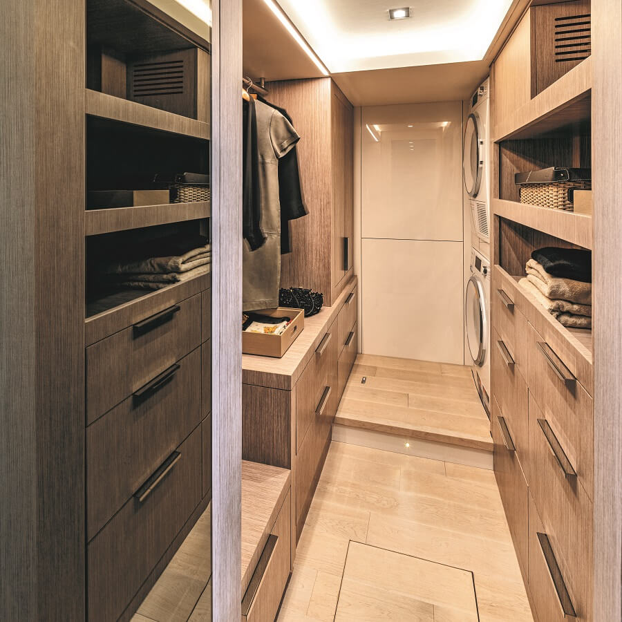 On hull one, the owner extended the walk-in wardrobe for more storage and a laundry area.
