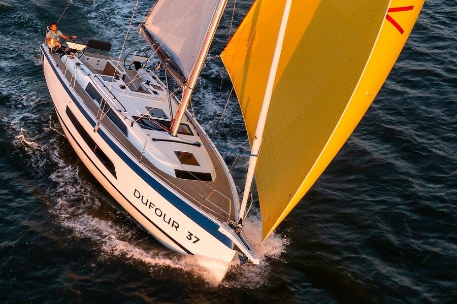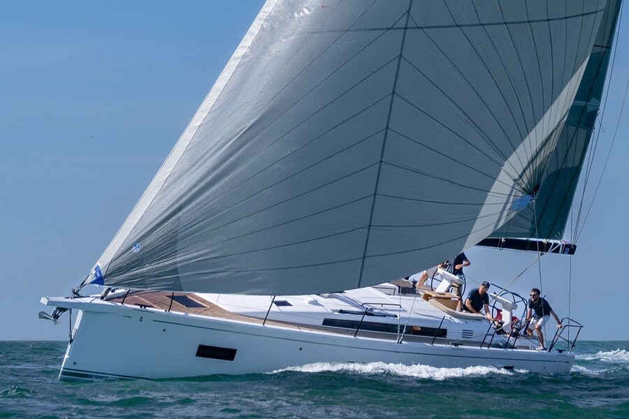 Other Cannes premieres included the Dufour 37 (click for article), the second-smallest model in the French builder’s portfolio. The 35ft 4in model has a 32ft 9in hull with a beam of 12ft 6in, which follows the form of offshore racing boats but with a slightly rounded lower hull. The 37 is available in three different versions: Easy, with two winches and a self-tacking jib, the more traditional Ocean version, and a racing-focused Performance version with six winches and high-performance equipment.