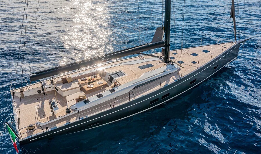 The shipyard’s first new sailing yacht of the year was the First 36, which premiered at the Palma International Boat Show and exhibited at Cannes. The yacht has received rave reviews for its performance, the result of an international design team including Argento, naval architect Sam Manuard, Slovenia’s Gigodesign for the interior, and New Zealand’s Pure Design & Engineering.