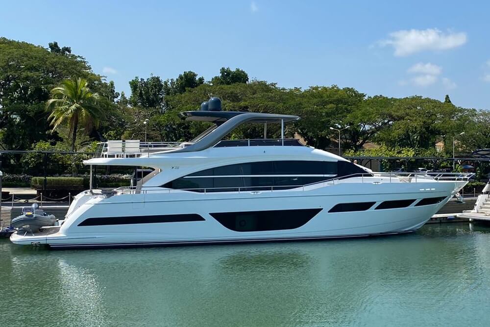 The Y75 is one of the most successful models in the region, with a flybridge that has space aft to fit a crane and store a tender. Another highly popular model is the Princess 88, which is the fifth hull of the model to be sold in Phuket and features an automated balcony by the saloon.