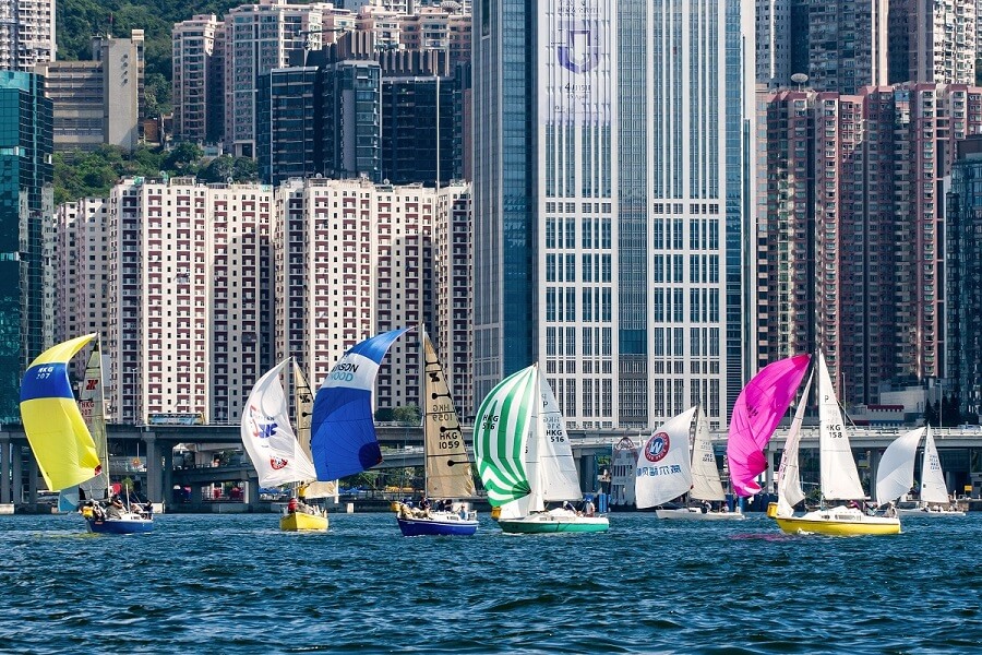 Sunday provided another superb day for sailing. Showcasing Hong Kong yachting at its best, over 100 yachts sailed two races in a gentle 8-9kt easterly breeze. With the audience including some watching from hotel quarantine in Hung Hom, the first race of the day featured courses within Victoria Harbour with a target time of one hour, resulting in close, competitive racing.