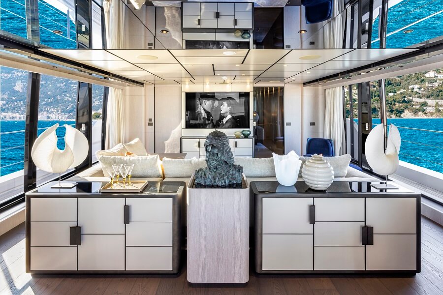 Exteriors are by Francesco Paszkowski Design, following up its work on the Custom Line 106’ and 120’, while Paszkowski created the interiors in collaboration with Margherita Casprini and the Custom Line Atelier.