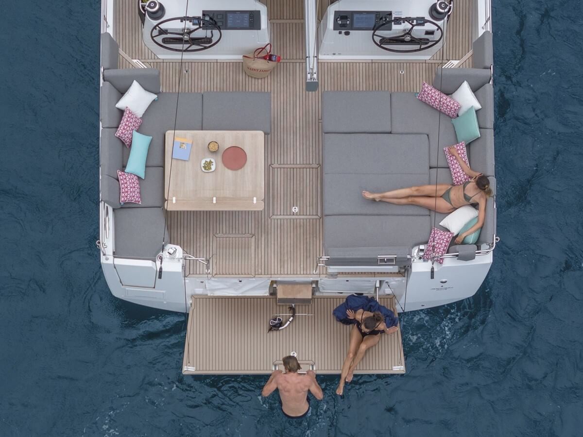 Quality of onboard lifestyle was a driver for this monohull, which includes many easy-living features that are typically only found aboard catamarans. The aft-deck layout, for example, is all about lounging.