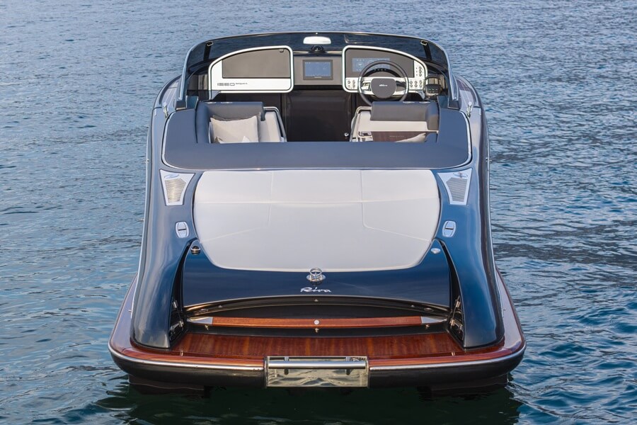 Options with the Riva Iseo Super include an automotive-inspired boat cover, which has a waterproof external layer to protect against the weather and a breathable wool inner layer that absorbs moisture.