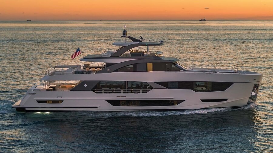 Ocean Alexander’s 35R, the 116ft flagship of its Revolution series, can be fitted with mtu’s 2,600bhp 16V 2000 M96L engines for a top speed of 24 knots. Horizon’s FD80, the most successful model in the builder’s popular high-volume fast displacement series, is available with twin 1,600bhp 10V 2000 M96L engines.