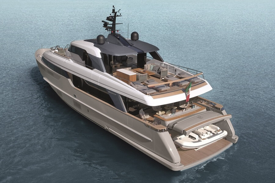 The Italian shipyard will also show the SD96 from its semi-displacement line, and the SX88, the pioneer of its crossover series combining the classic flybridge motor yacht with explorer styling and functionality.