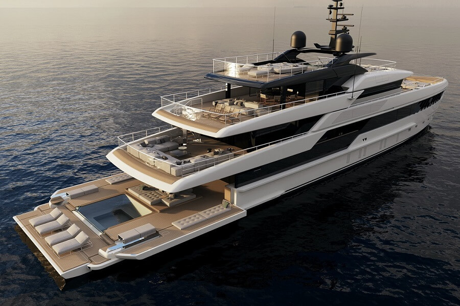 The Italian luxury motor yacht builder is building a two-pool, 50m superyacht that houses a green methanol fuel system and ‘hidden engine room’ architecture.