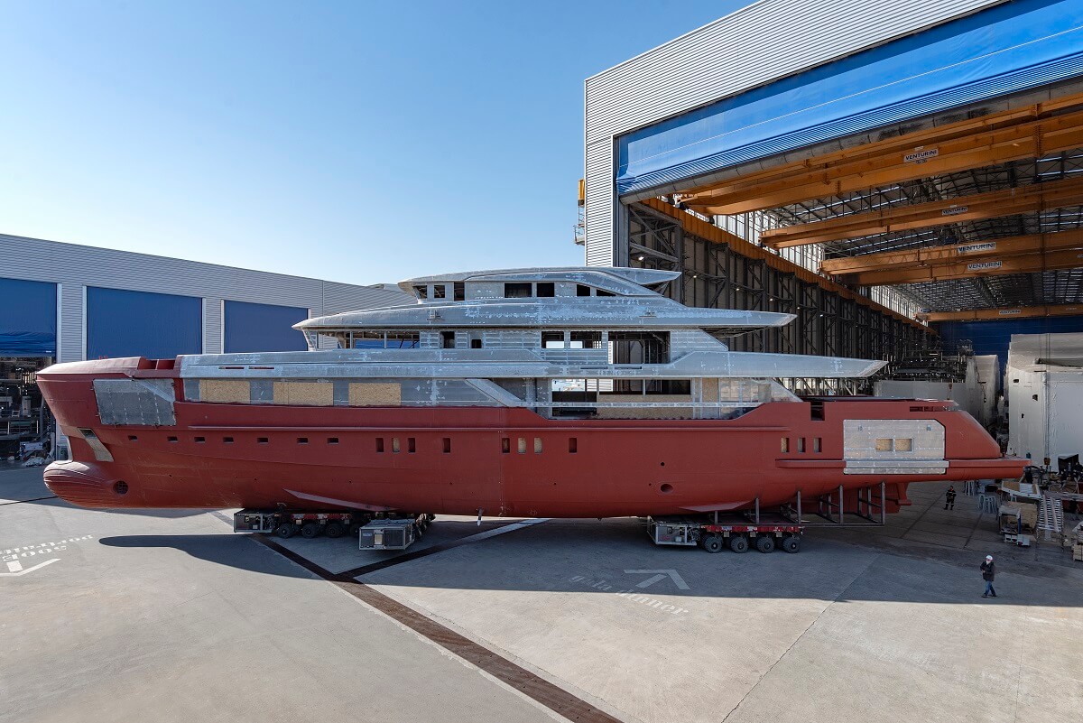 Sanlorenzo has revealed in-build photos of the 57Steel, a new addition to the Italian builder’s Superyacht range that’s expected to launch in 2022.