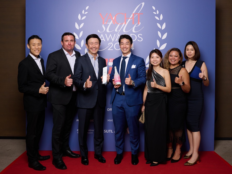 Arthur Tay (third left) collects the trophy as ONE°15 Marina Sentosa Cove wins Best Marina in Asia at YACHT STYLE Awards 2024
