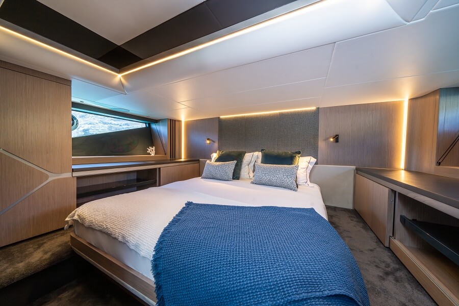 The forward VIP and master stateroom each have an en-suite bathroom and complete a remarkable lower deck for what Sunseeker has described as the “ultimate open day boat”.