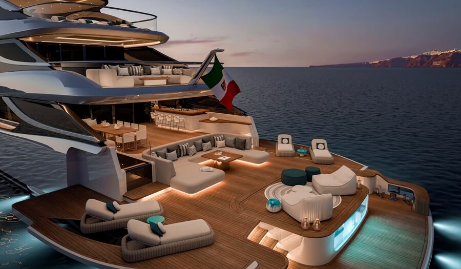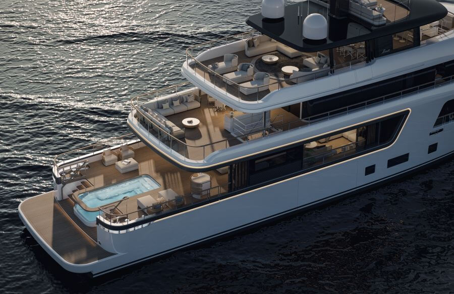 Petrozzi believes the synergy between east and west is distilled in Benetti’s brand-new Motopanfilo 45M with its patented Veranda Deck®, which launches in 2026. A 9m beam encourages familial conviviality in marinas, where much Asian usage takes place. Retractable canopies and slide-open saloon doors can create the perfect micro-climate in any destination.