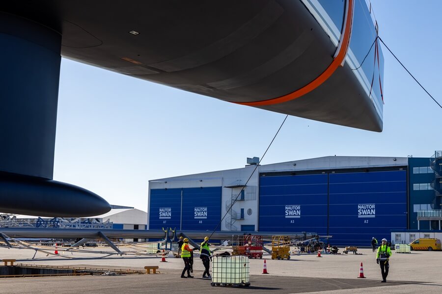 Hull one of Nautor Swan’s new flagship has launched in Pietarsaari and will be sailing “in just a few weeks”.