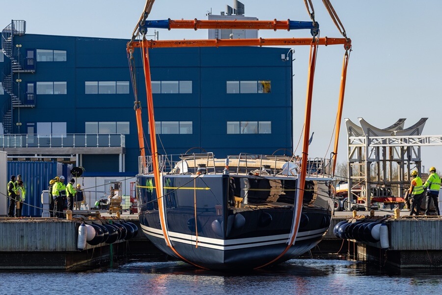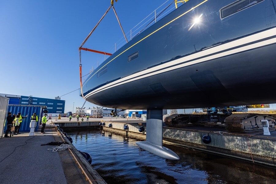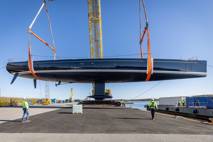 Following the launch, the shipyard stated that “in just a few weeks, she will be ready to sail, heading to the Mediterranean for cruising, racing, and eventually reaching her home port in Porto Cervo”.