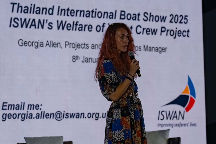 One of the standout sessions of the day was ISWAN spokesperson Georgia Allen’s presentation on crew welfare, which explored the challenges faced by yacht crews and how to better support their well-being. Representing ISWAN (the International Seafarers’ Welfare and Assistance Network), Allen introduced the YachtCrewHelp programme, a global initiative providing 24/7 helpline support for yacht crew.