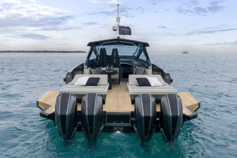 The outboard version of the wallypower50 features four Mercury engines that can power the 50-footer to 50-plus knots.